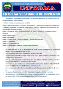 CARTEL ENTREGA VESTUARIO INVIERNO 2026